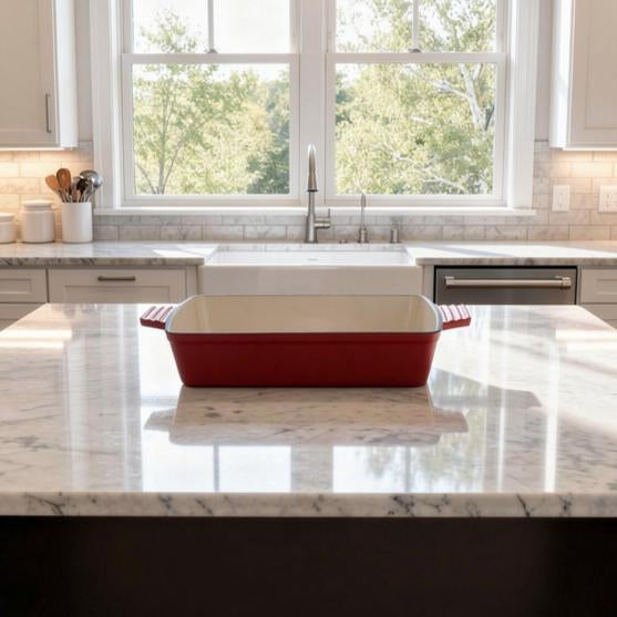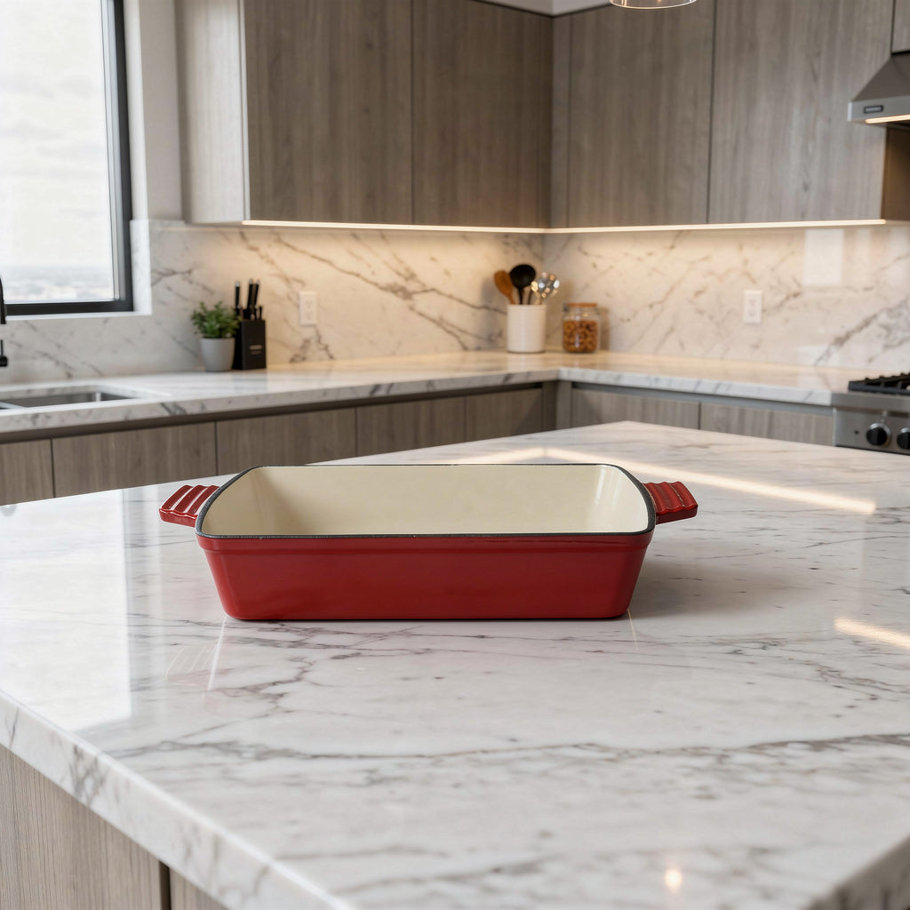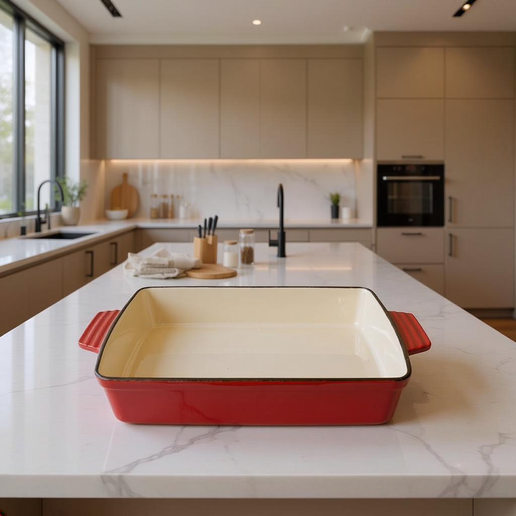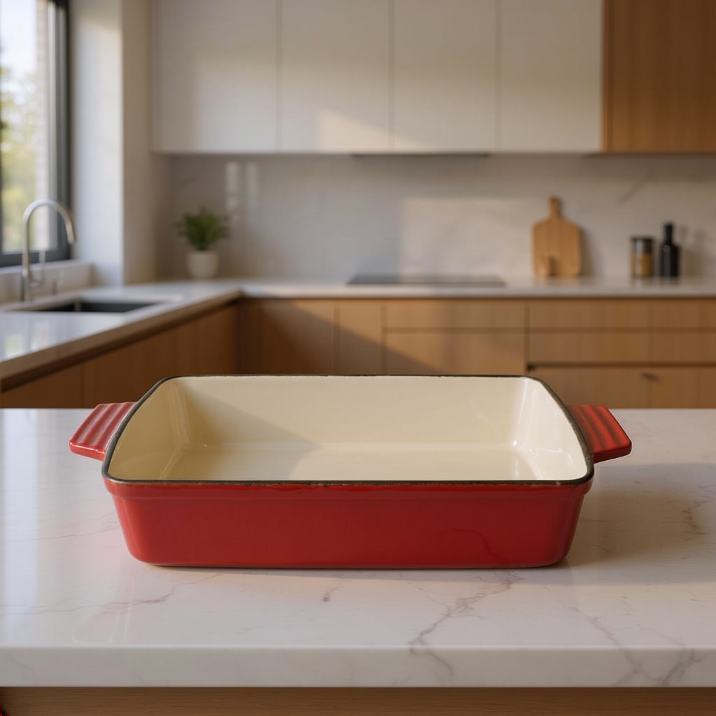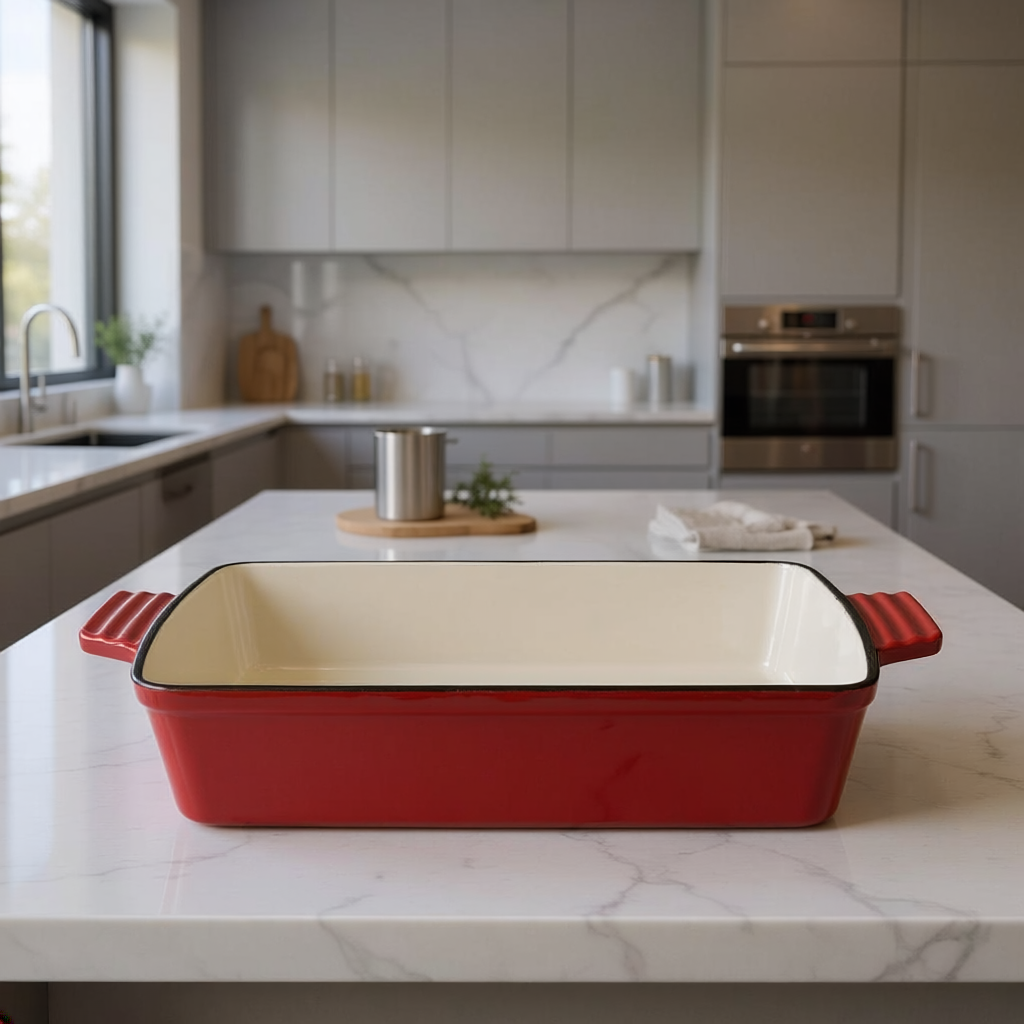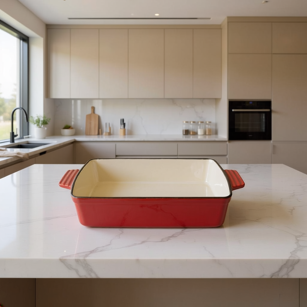 Porque combina la resistencia del hierro fundido con la protección del esmalte. Es un producto duradero, saludable y atemporal: una bandeja que acompañará a tu familia durante generacione.
